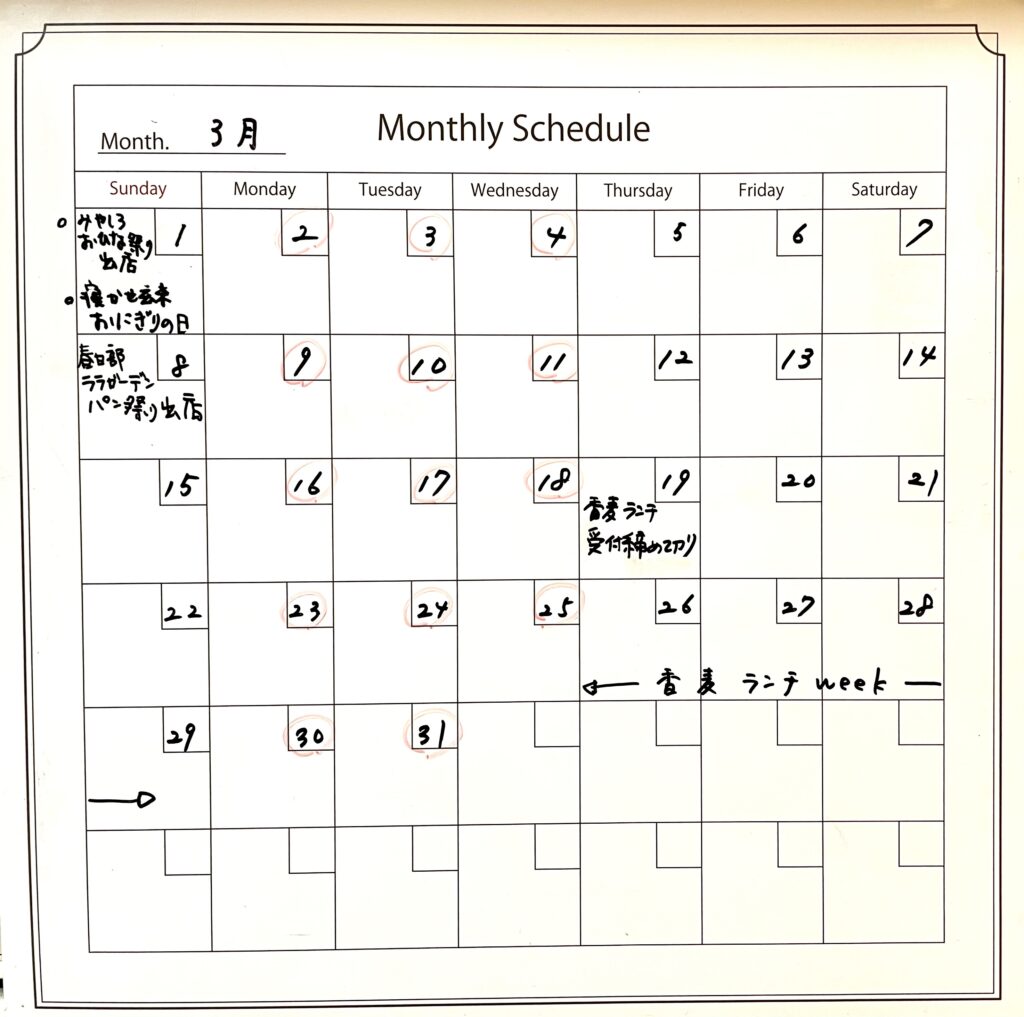 香麦の3月カレンダーになります。
